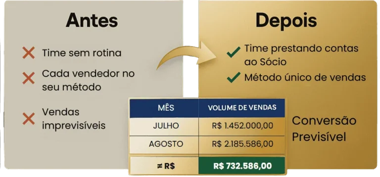 Não é teste. Não é tentativa e erro. São processos 100% validados por centenas de empresários. Só libero 2 ou 3 vagas por mês e só aceito quem tem perfil para ter resultado rápido